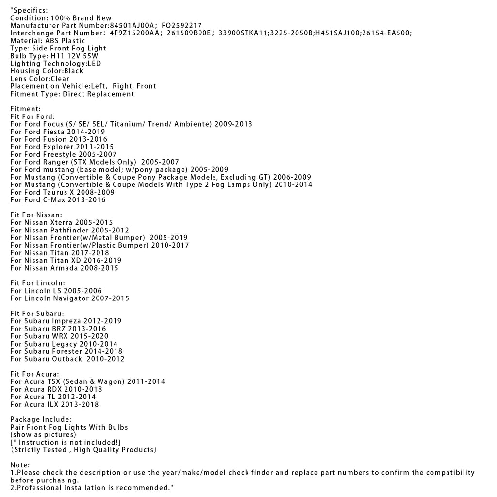 Pair LED Daytime Running Fog Lights For Ford Focus Fiesta C-Max 84501AJ00A