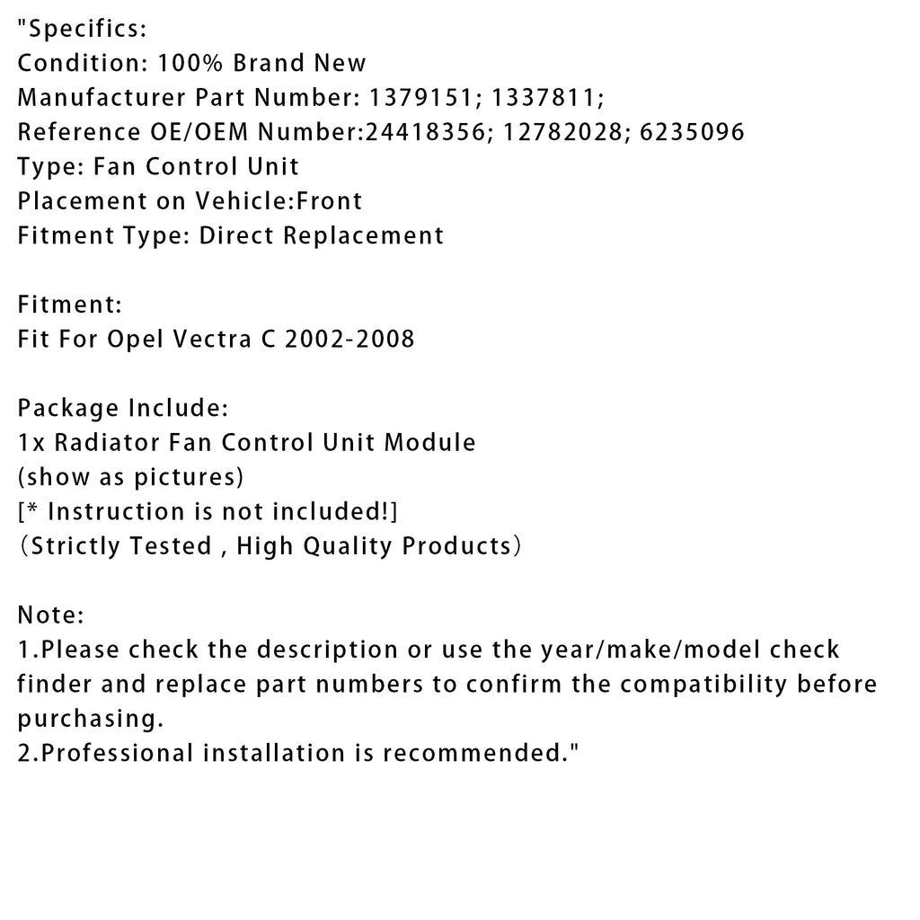 Radiator Fan Control Module For Opel Vectra C 02-08 12782028 1337811