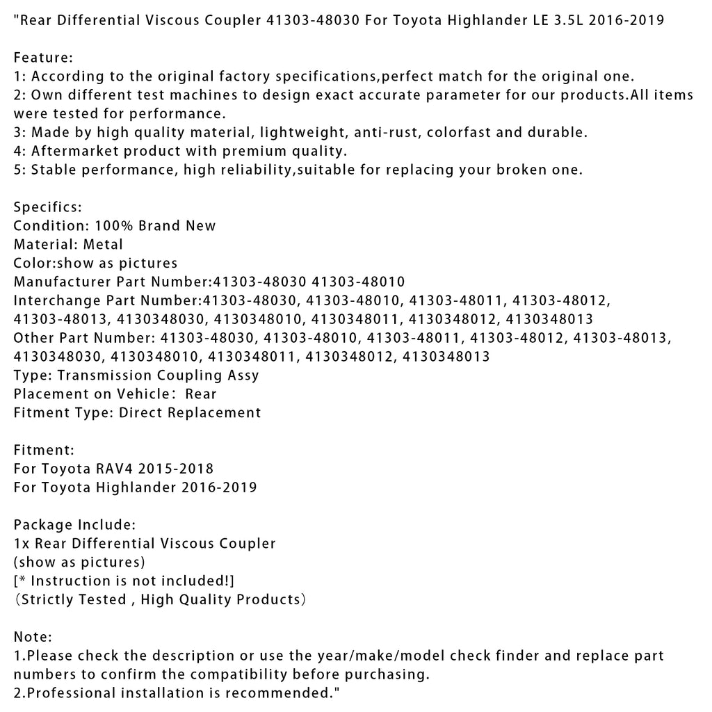 Rear Differential Viscous Coupler 41303-48030 For Toyota Highlander LE 3.5L 2016-2019