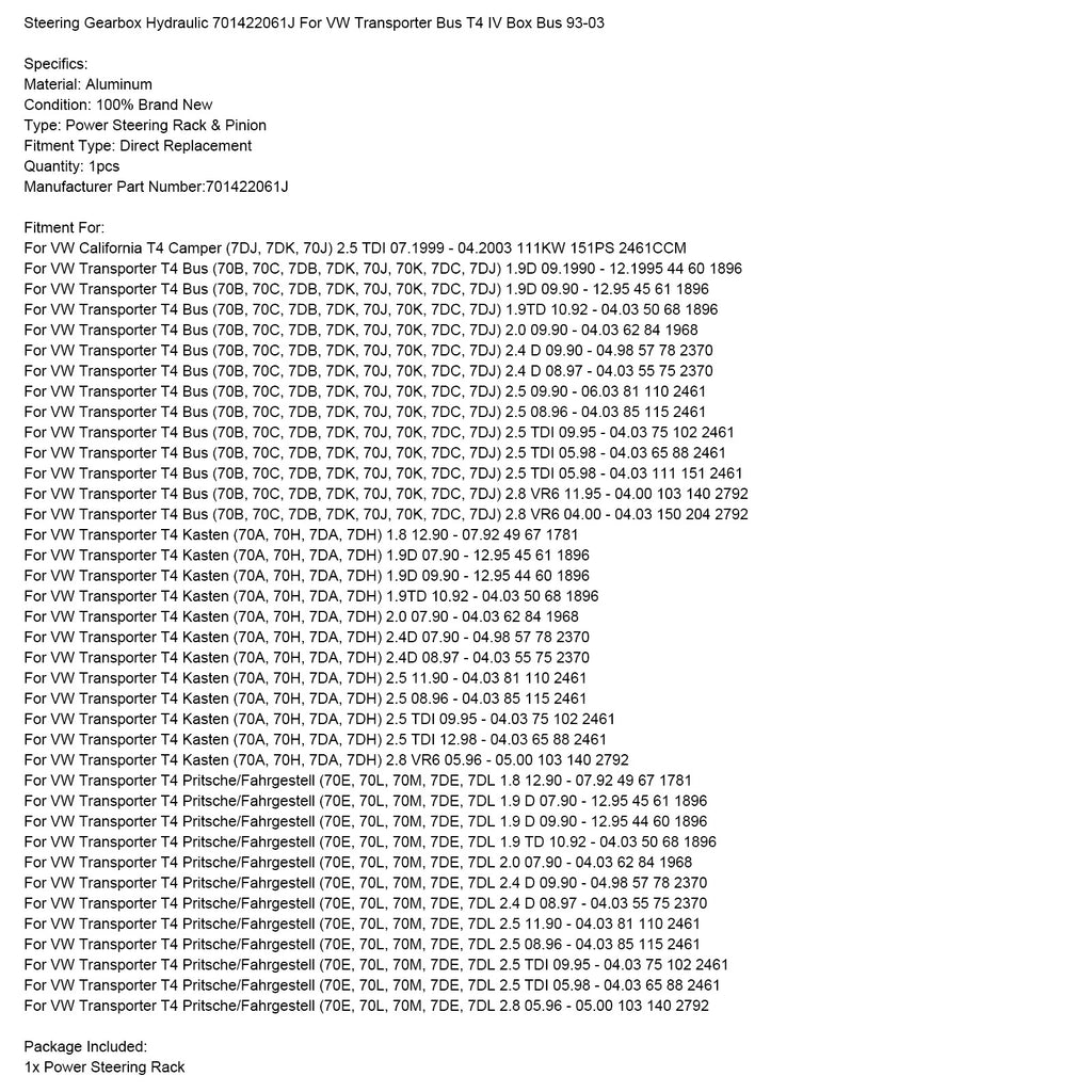 Steering Gearbox Hydraulic 701422061J For VW Transporter Bus T4 IV Box Bus 93-03
