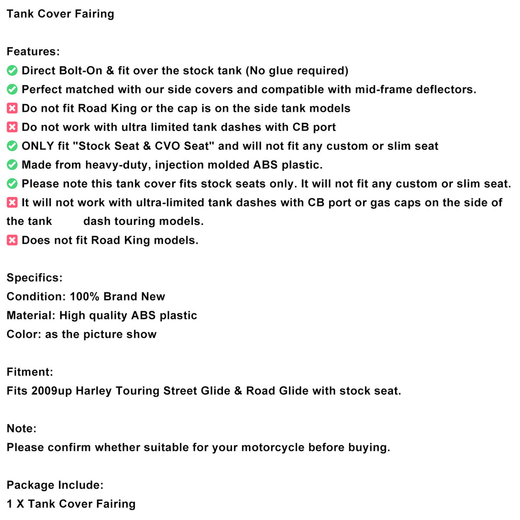 ✅ Please note this tank cover fits stock seats only. It will not fit any custom or slim seat.