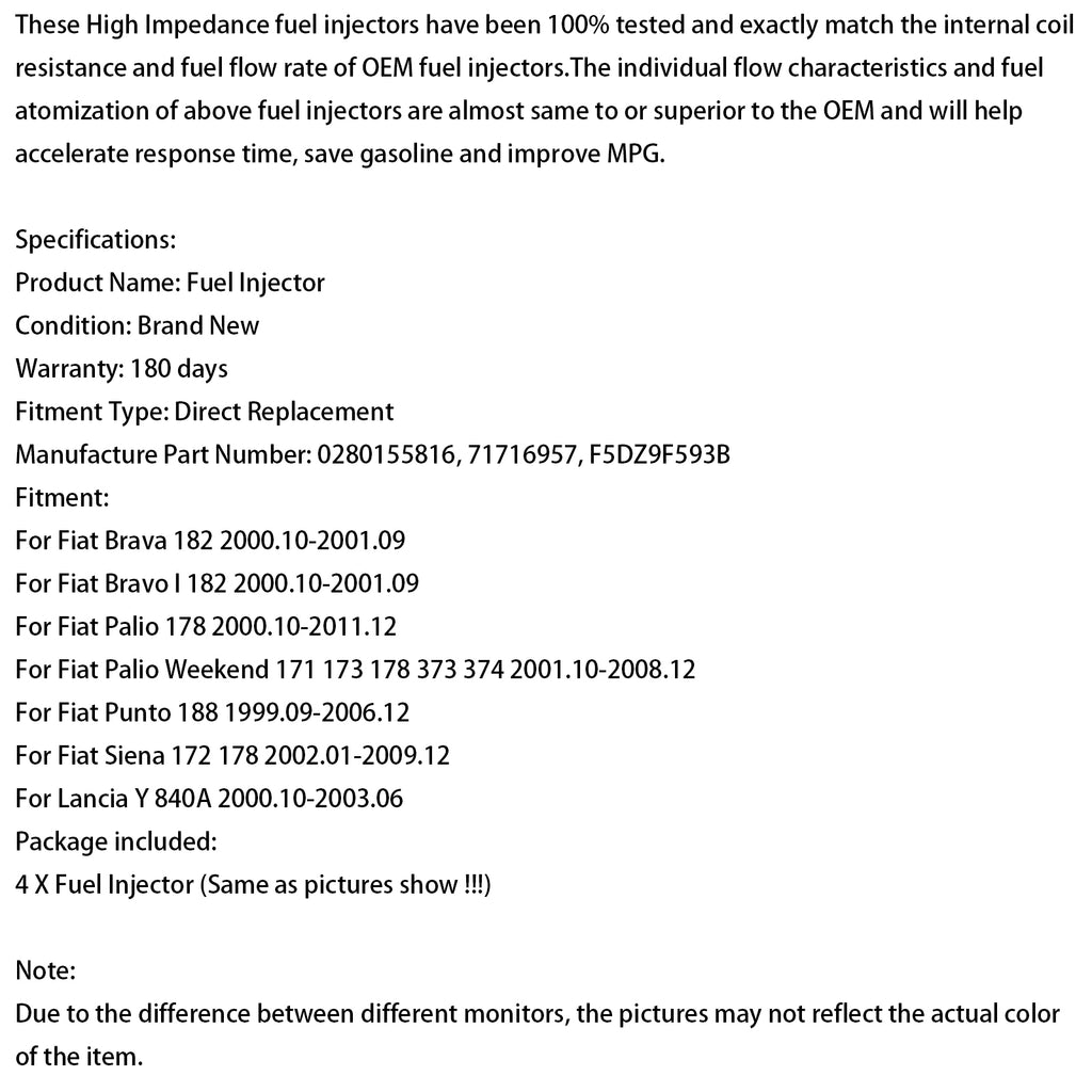 4PCS Fuel Injector 0280155816 Fit Fiat Brava Bravo I Palio Punto Siena Lancia Y
