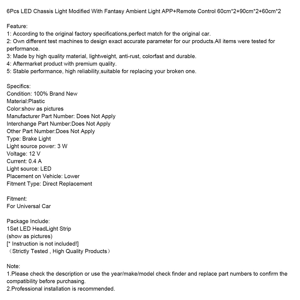 6Pcs LED Chassis Light Modified With Fantasy Ambient Light APP+Remote Control 60cm*2+90cm*2+60cm*2