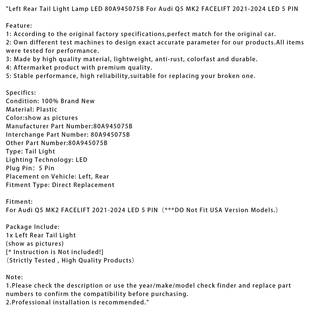 Left Rear Tail Light Lamp LED 80A945075B Fit For Audi Q5 MK2 FACELIFT 2021-2024 LED 5 PIN
