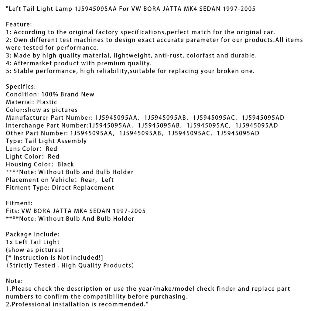 Left Tail Light Lamp 1J5945095AA Fit For VW BORA JATTA MK4 SEDAN 1997-2005