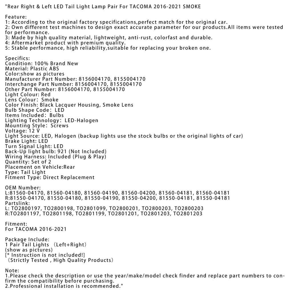 Rear Right & Left LED Tail Light Lamp Pair For TACOMA 2016-2021 SMOKE