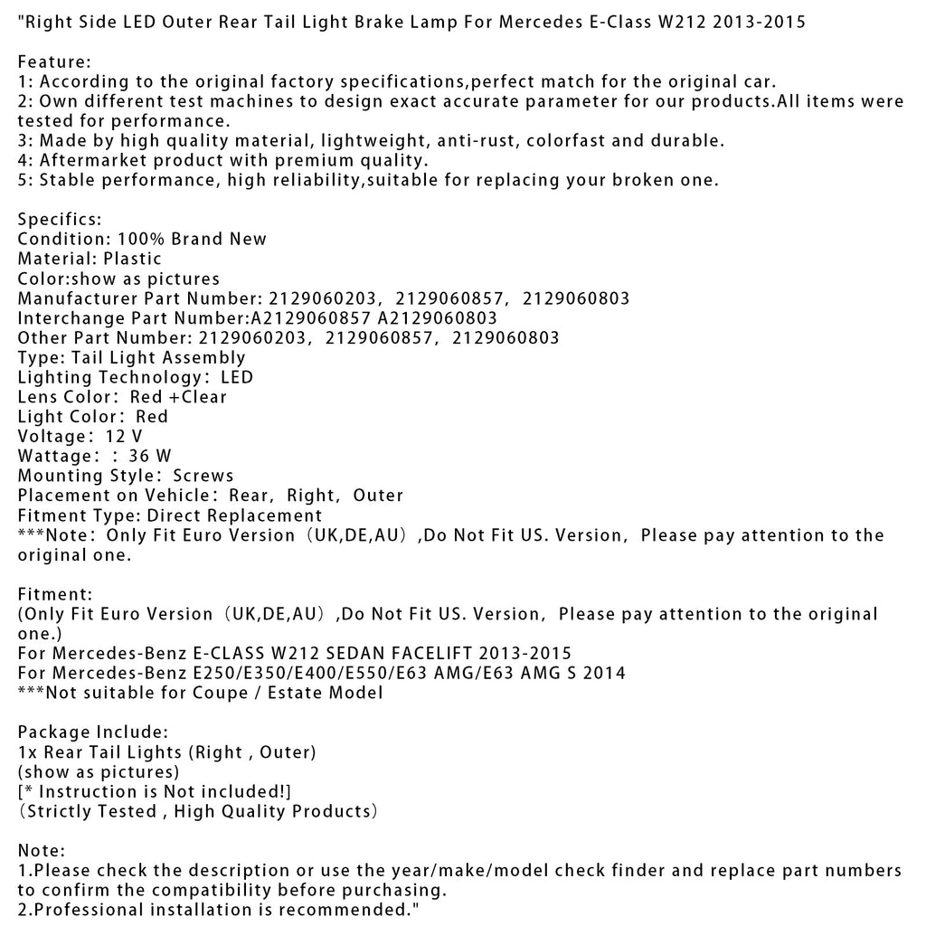 Right Side LED Outer Rear Tail Light Brake Lamp Fit For Mercedes E-Class W212 2013-2015