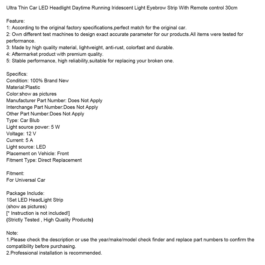 Ultra Thin Car LED Headlight Daytime Running Iridescent Light Eyebrow Strip With Remote control 30cm
