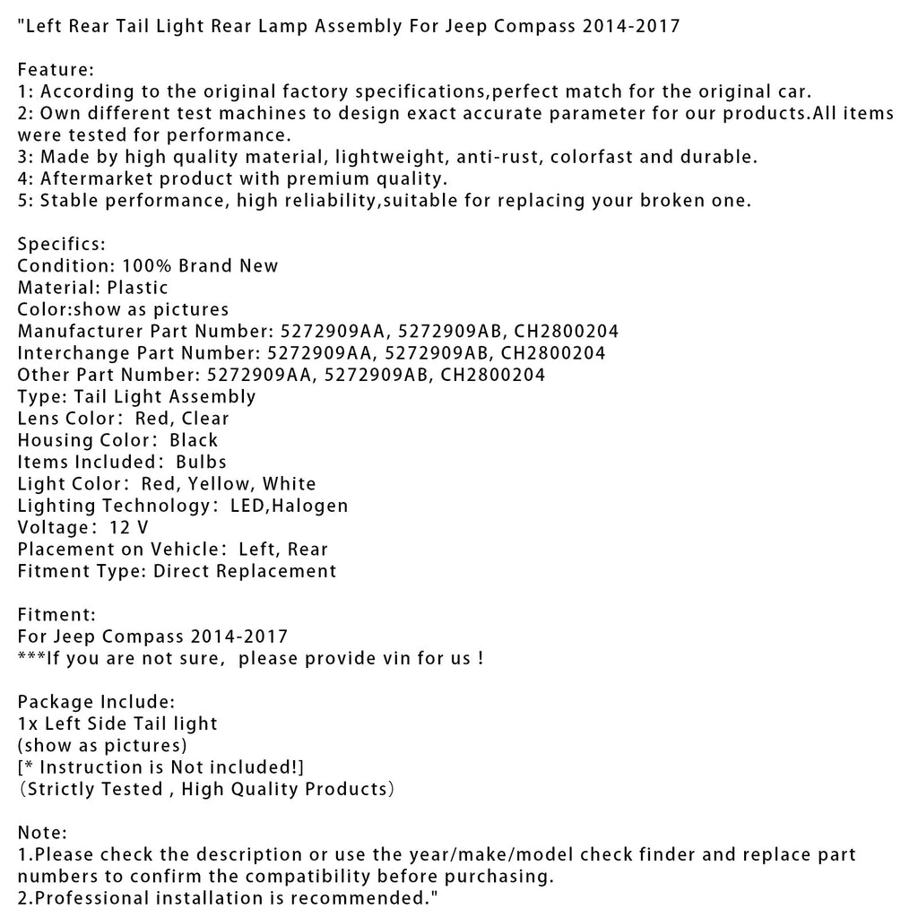 Left Rear Tail Light Rear Lamp Assembly For Jeep Compass 2014-2017