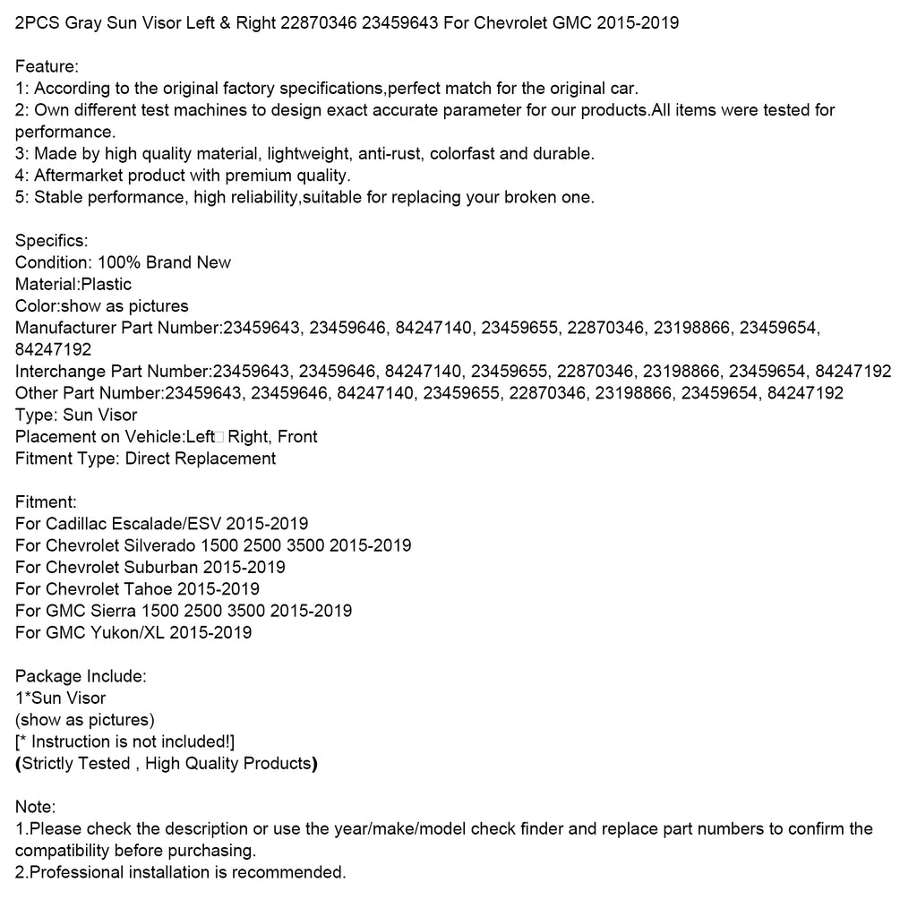 2PCS Gray Sun Visor Left & Right 22870346 23459643 For Chevrolet GMC 2015-2019
