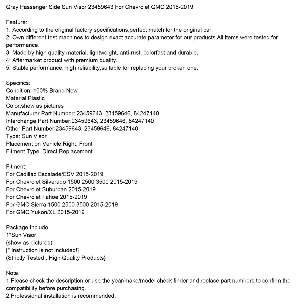 Gray Passenger Side Sun Visor 23459643 For Chevrolet GMC 2015-2019