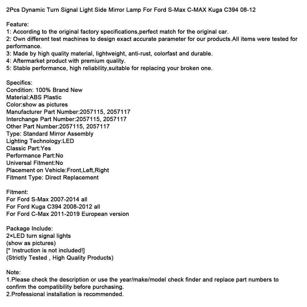 2Pcs Dynamic Turn Signal Light Side Mirror Lamp For Ford S-Max C-MAX Kuga C394 08-12