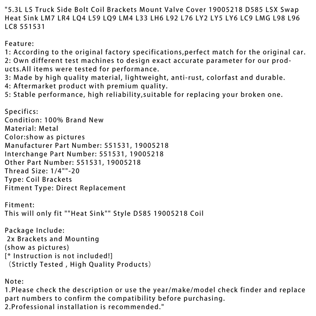 5.3L LS Truck Side Bolt Coil Brackets Mount Valve Cover 19005218 D585 LSX Swap Heat Sink LM7 LR4 LQ4 L59 LQ9 LM4 L33 LH6 L92 L76 LY2 LY5 LY6 LC9 LMG L98 L96 LC8 551531