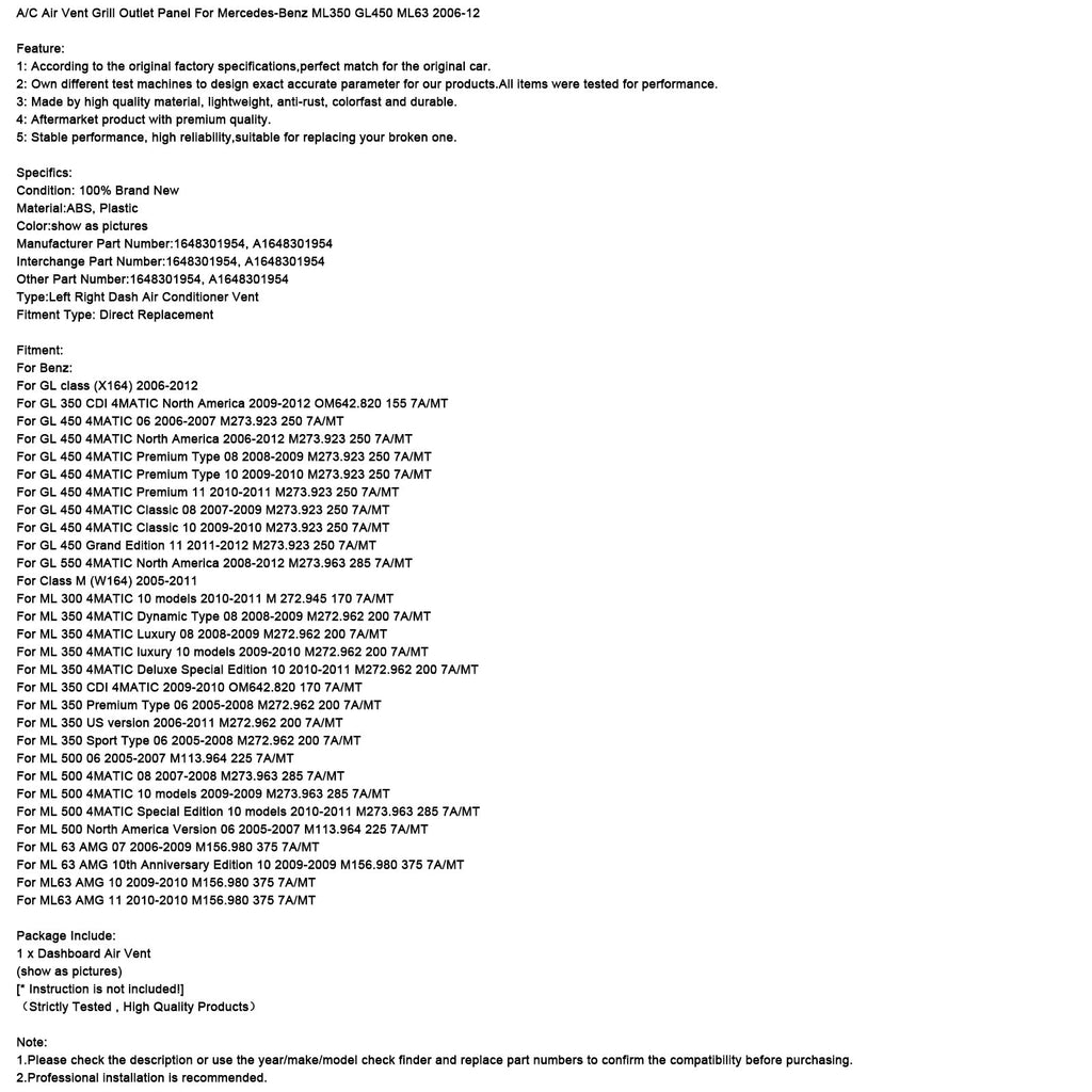 A/C Air Vent Grill Outlet Panel For Mercedes-Benz ML350 GL450 ML63 2006-12