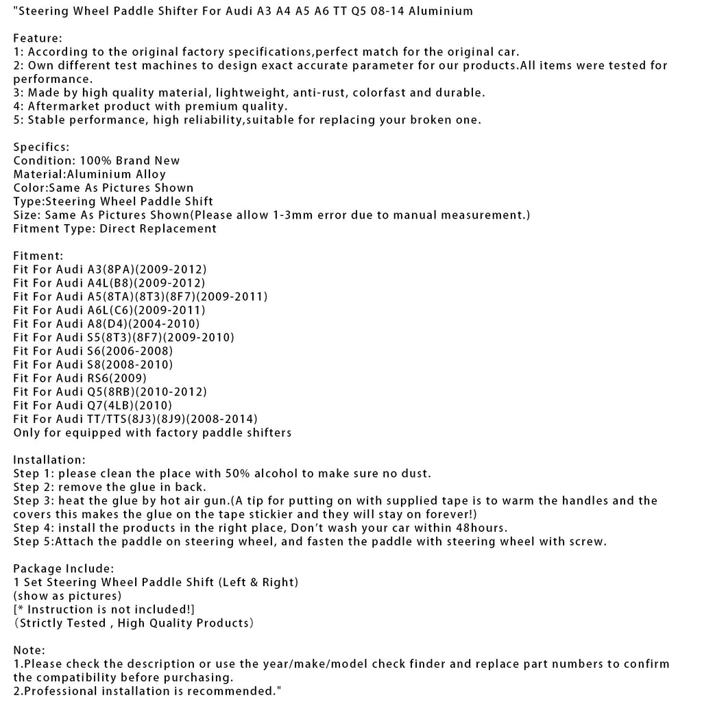 Steering Wheel Paddle Shifter For Audi A3 A4 A5 A6 TT Q5 08-14 Aluminium