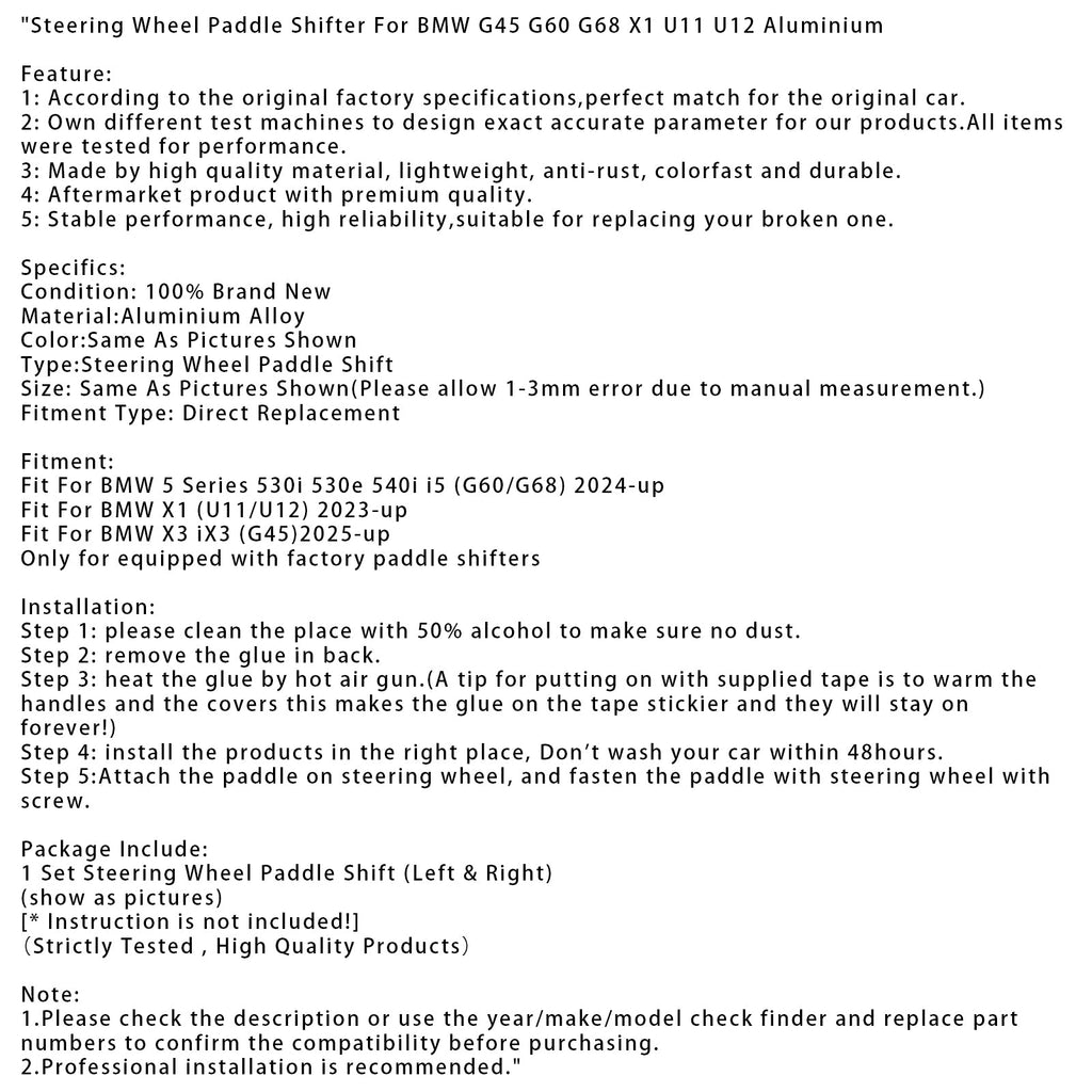 Steering Wheel Paddle Shifter Fit For BMW G45 G60 G68 X1 U11 U12 Aluminium