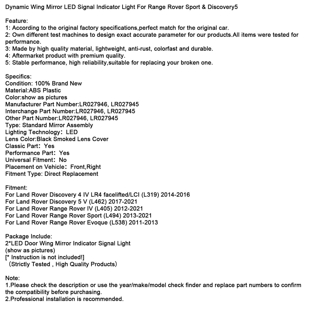 Dynamic Wing Mirror LED Signal Indicator Light For Range Rover Sport & Discovery5