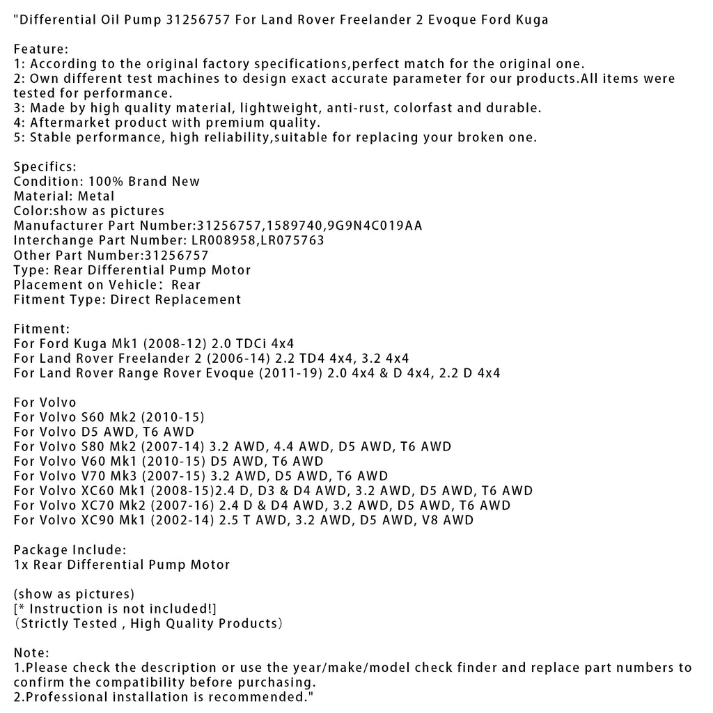Differential Oil Pump 31256757 For Land Rover Freelander 2 Evoque Ford Kuga