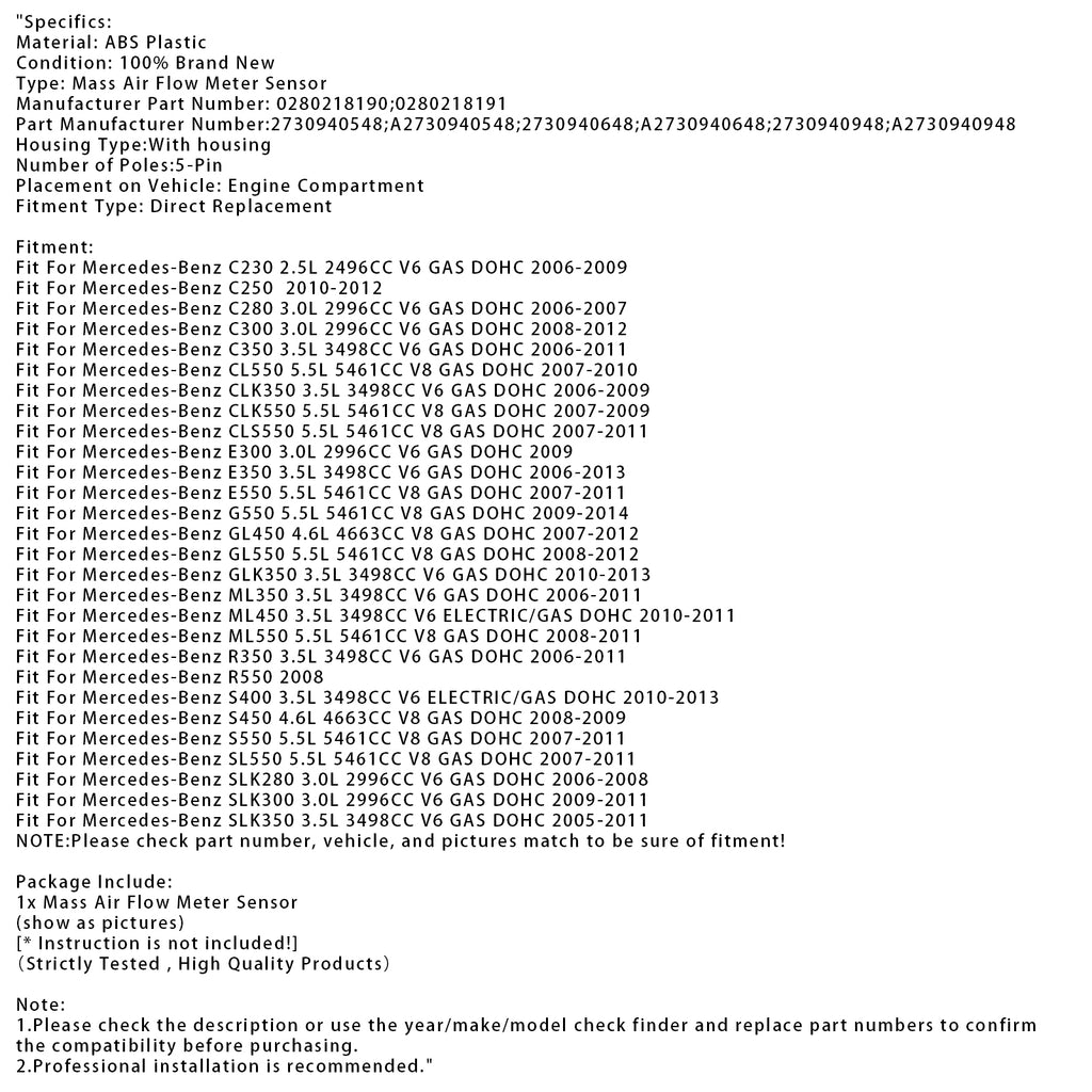 Mass Air Flow Meter Sensor For Mercedes-Benz E350 C300 ML350 0280218190