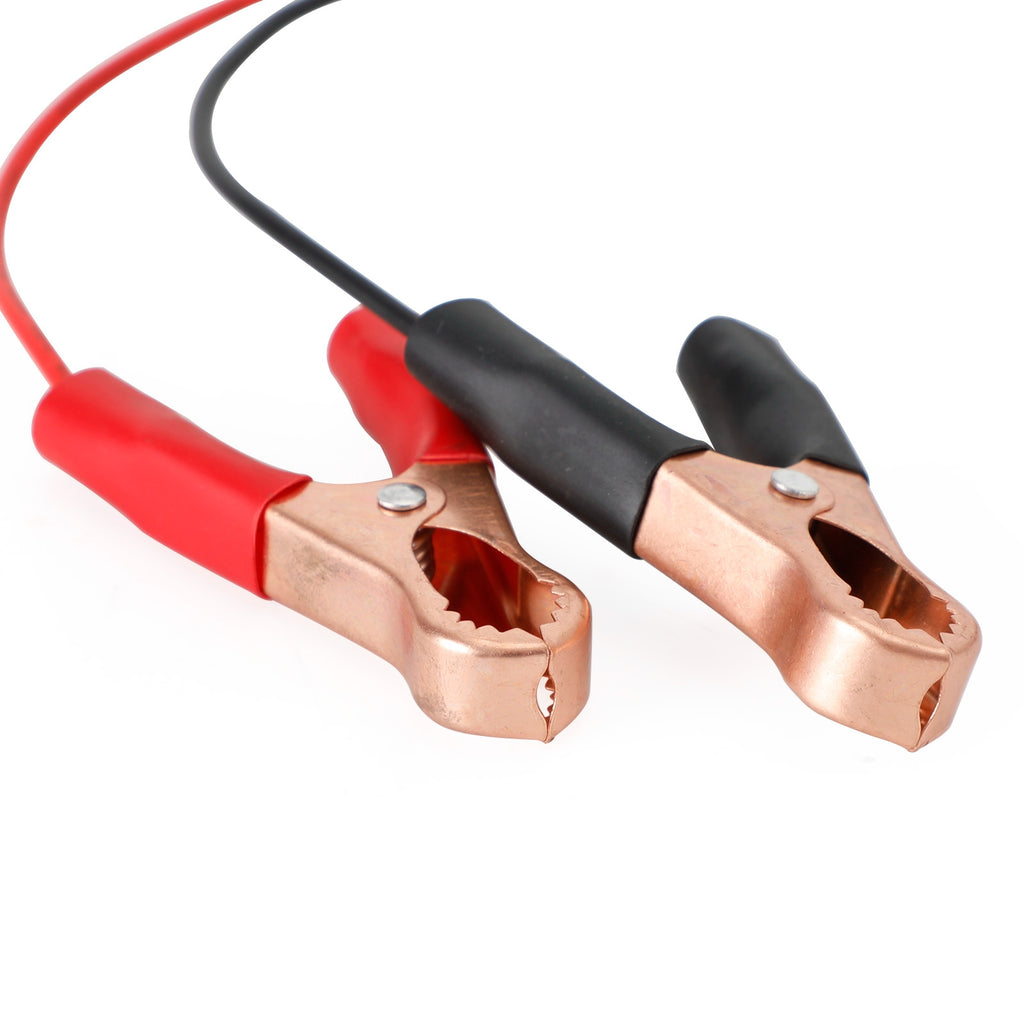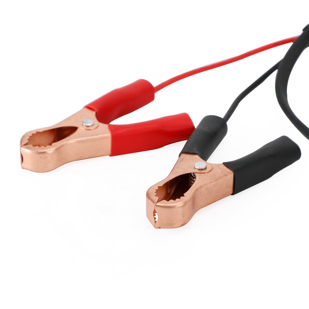 ?€??Red clip Connect to the positive, black clip connected to the negative