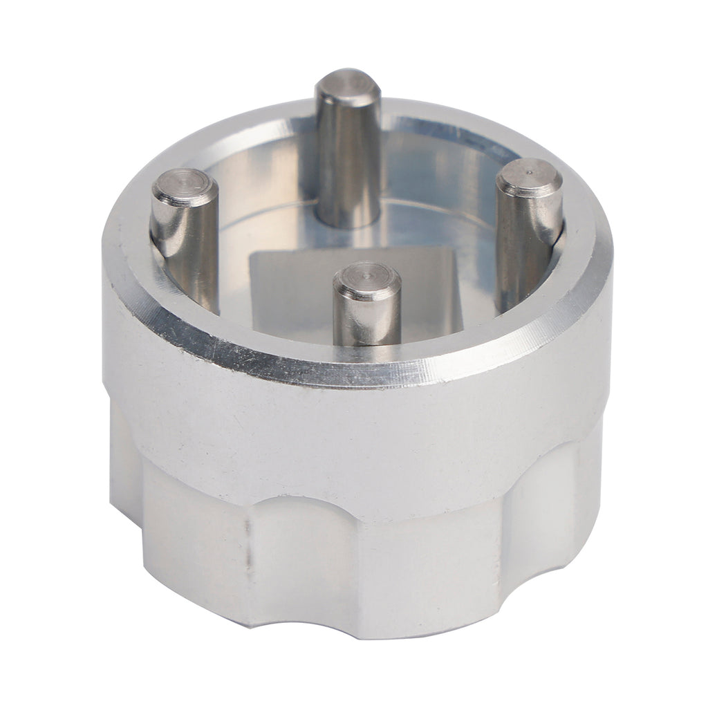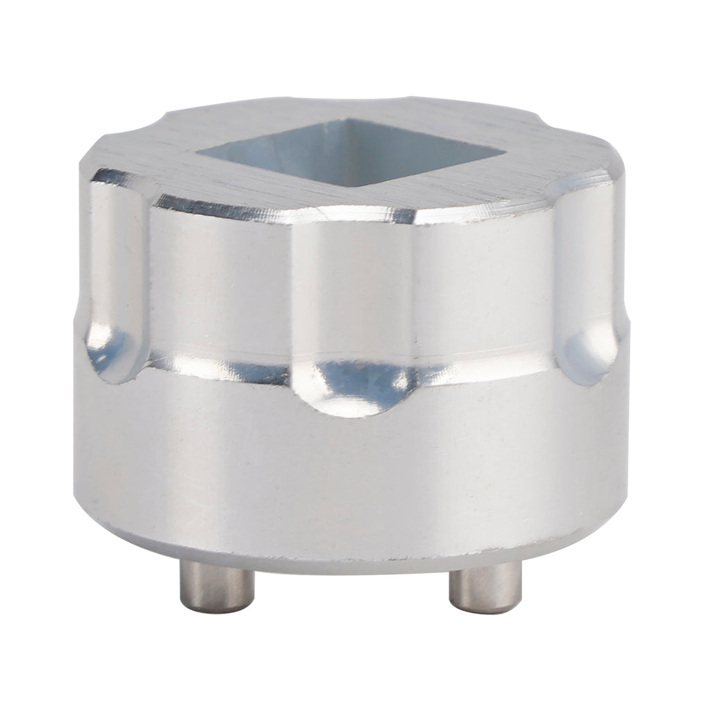 This is used to remove the rebound cap on a DPX2. It is meant to fit the same as fox part number 398-00-761. It features hardened steel pins, and a 3/8 square drive. We also added notches on the side to give some grip when things get oily.