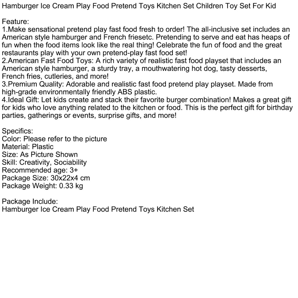 Hamburger Ice Cream Play Food Pretend Toys Kitchen Set