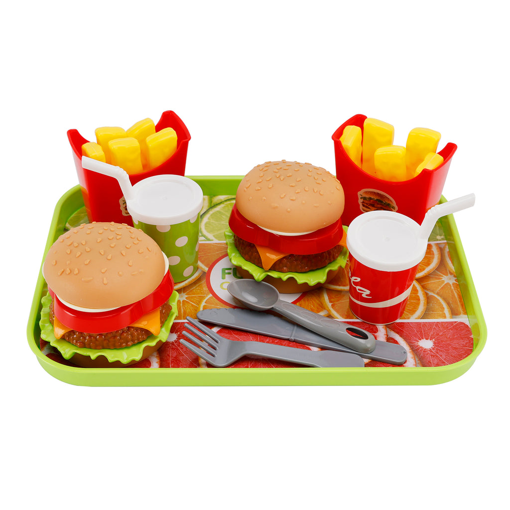Hamburger Fries Drink Play Food Pretend Toy Kitchen Set