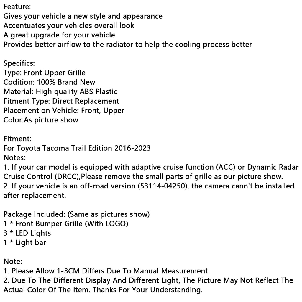 Front Bumper Grill Grille Fit Toyota Tacoma 2016-2023 W/ LED Light