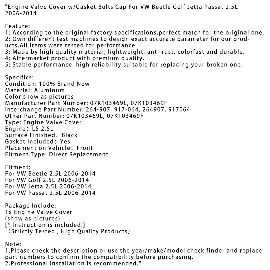 Engine Valve Cover w/Gasket Bolts Cap For VW Beetle Golf Jetta Passat 2.5L 2006-2014