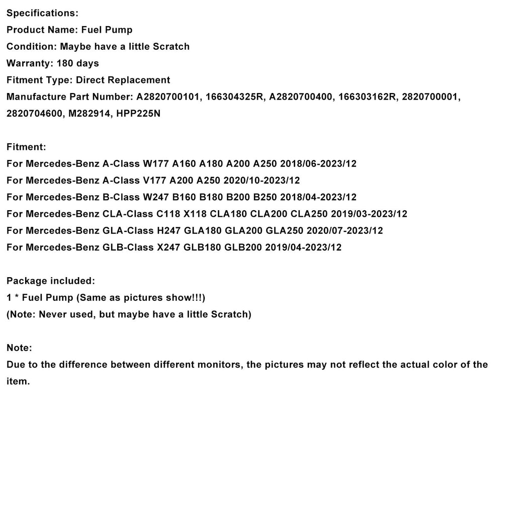 2019/03-2023/12 Mercedes-Benz CLA-Class C118 X118 CLA180 CLA200 CLA250 High Pressure Fuel Pump 166303162R A2820700101