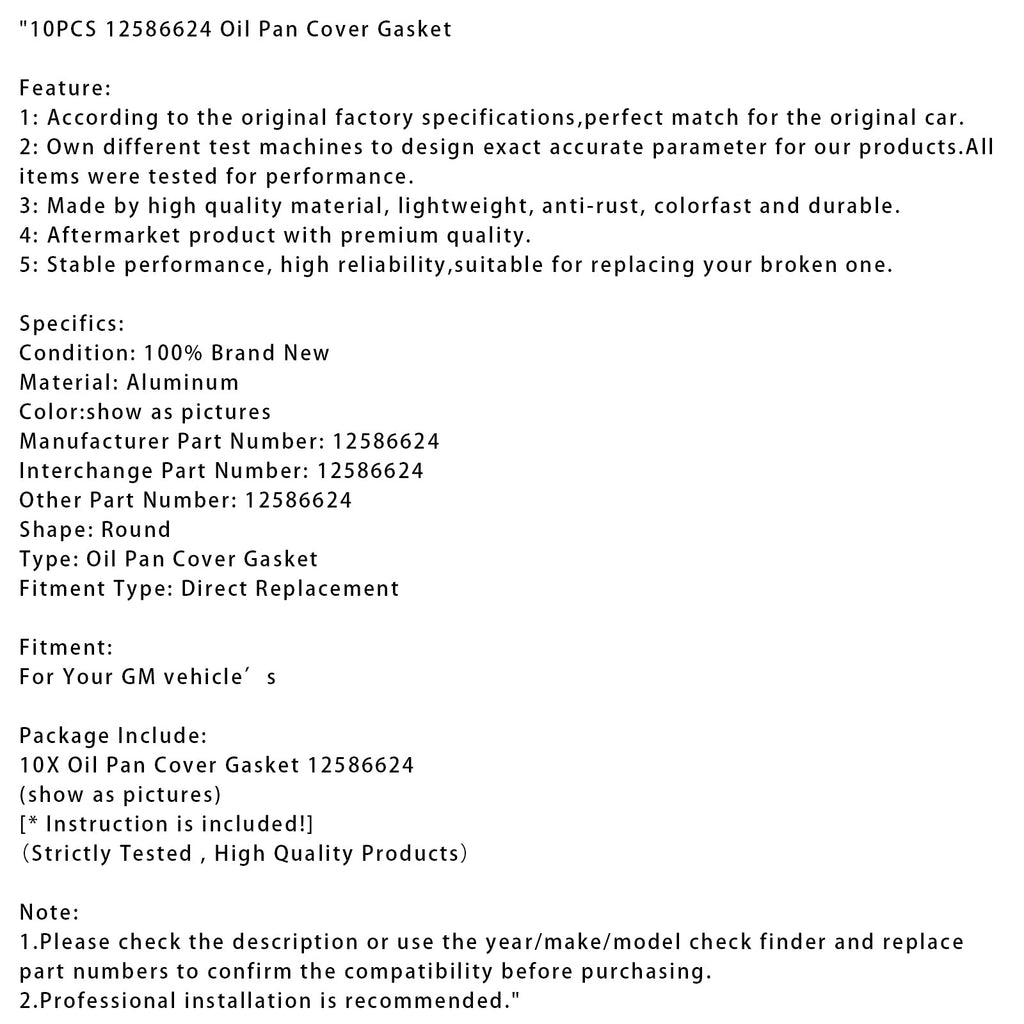 10PCS 12586624 Oil Pan Cover Gasket