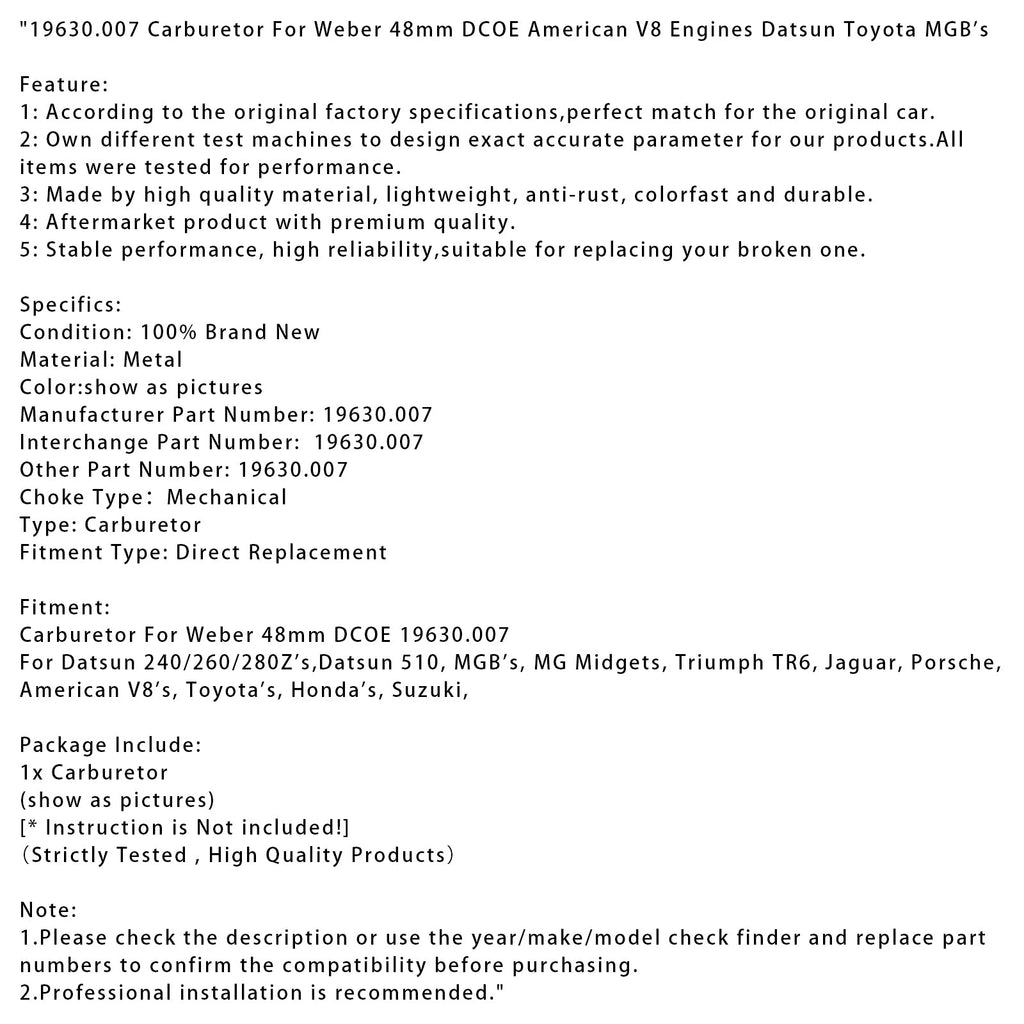 19630.007 Carburetor For Weber 48mm DCOE American V8 Engines Datsun Toyota