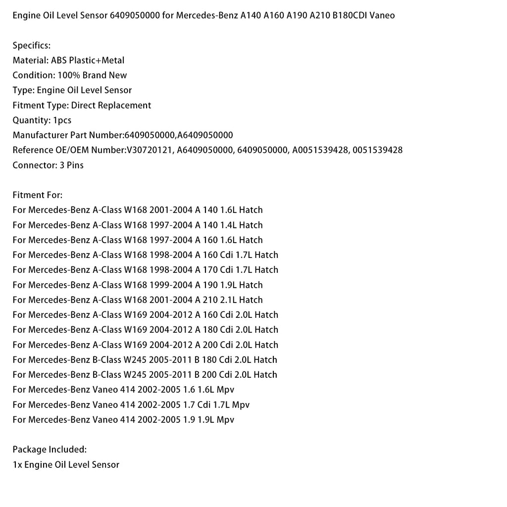 Engine Oil Level Sensor 6409050000 Fit for Mercedes-Benz A140 A160 A190 A210 B180CDI Vaneo