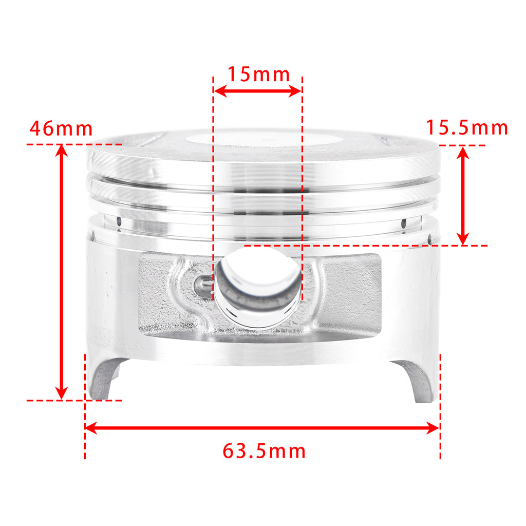 Kit is for standard bore size - 63,5 mm, 15mm steel piston pin.