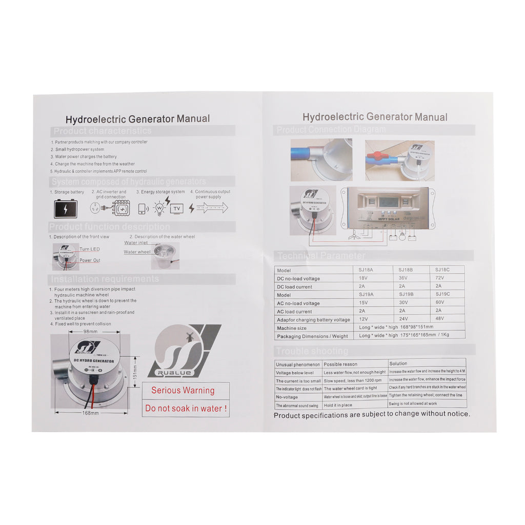 24V Water Flow Turbine Small Hydroelectric Generator DC36V 36W/50W Alternating Current High Efficiency Brushless Motor for Home Field