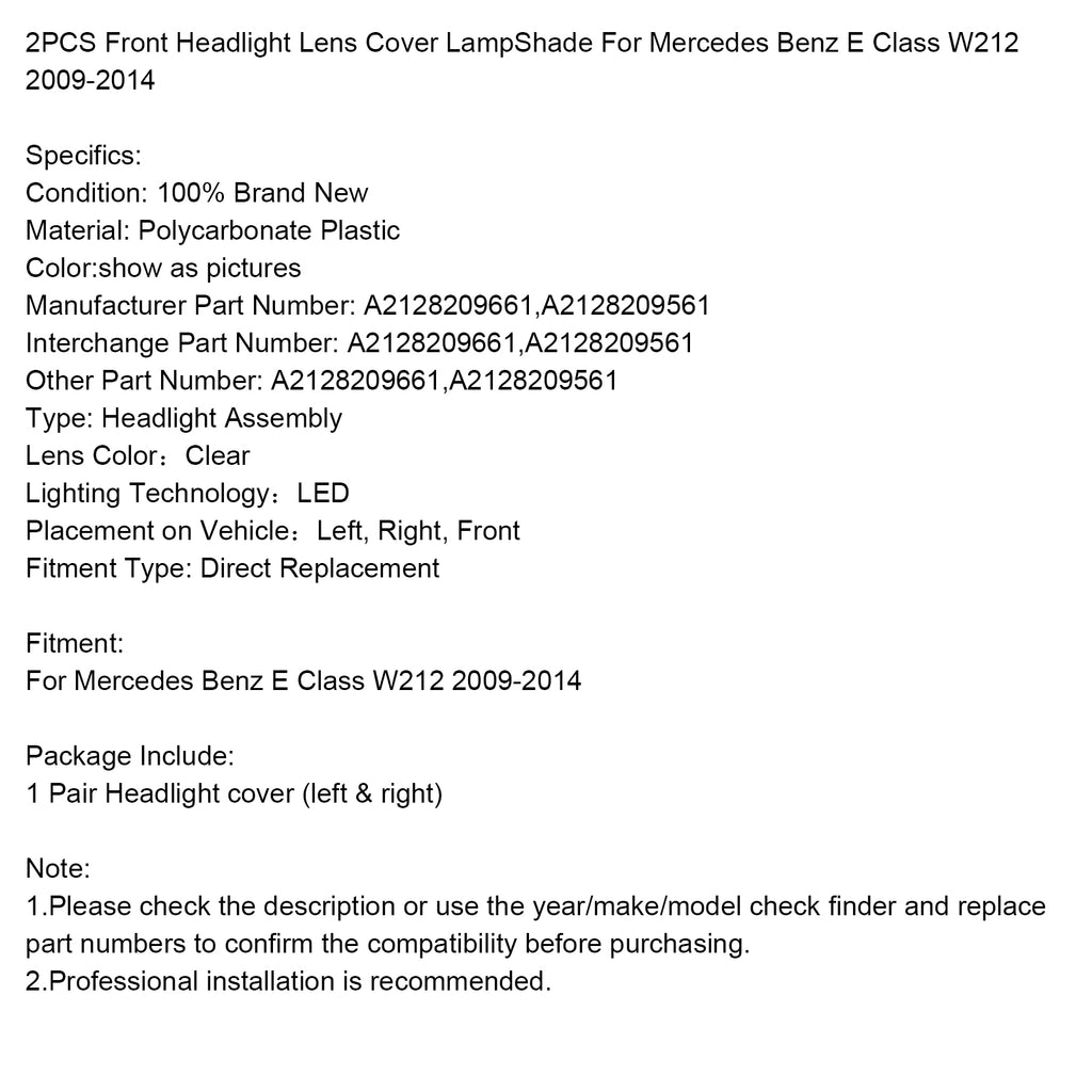 2PCS Front Headlight Lens Cover LampShade For Mercedes Benz E Class W212 2009-2014