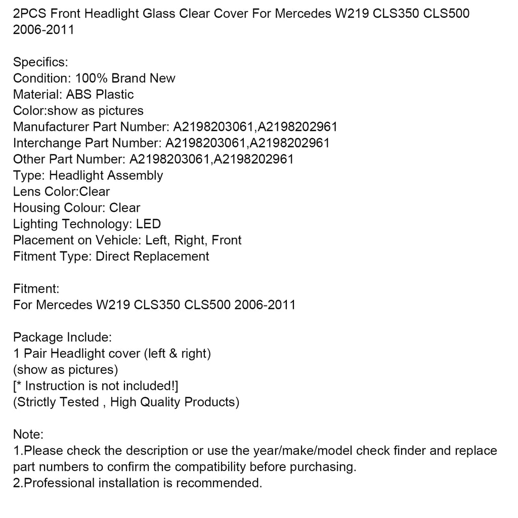 2PCS Front Headlight Glass Clear Cover For Mercedes W219 CLS350 CLS500 2006-2011