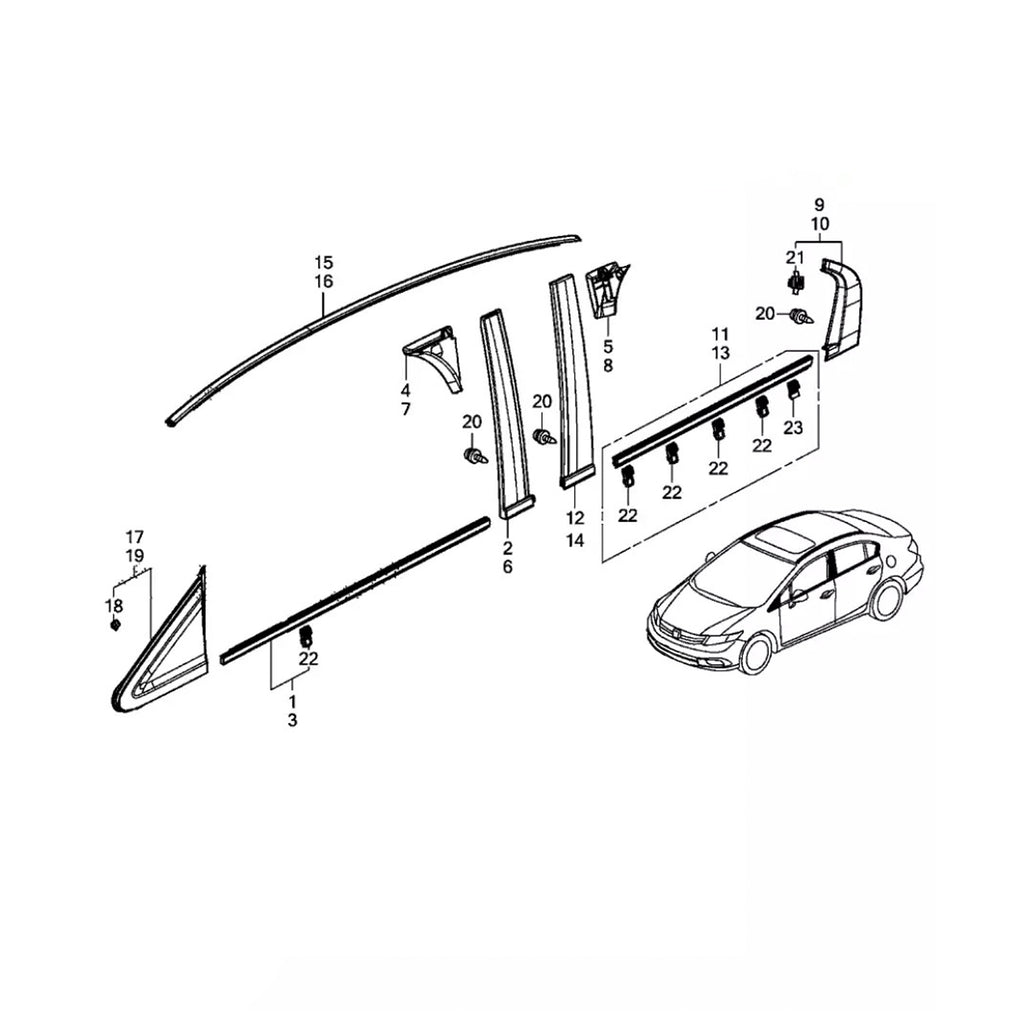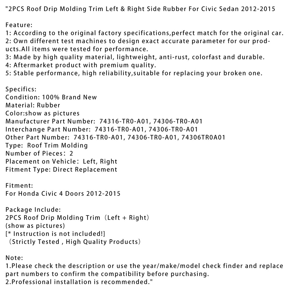 2PCS Roof Drip Molding Trim Left & Right Side Rubber For Civic Sedan 2012-2015
