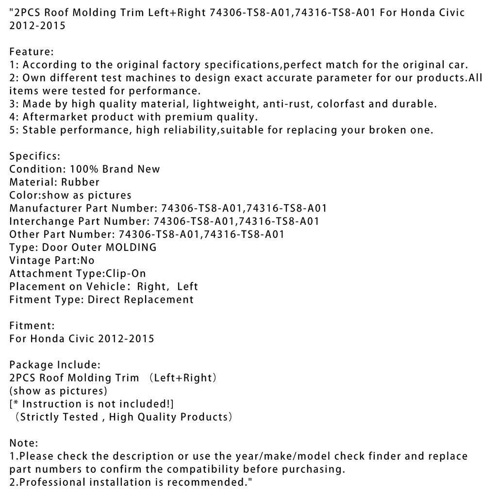 2PCS Roof Molding Trim Left+Right 74306-TS8-A01,74316-TS8-A01 For Honda Civic 2012-2015
