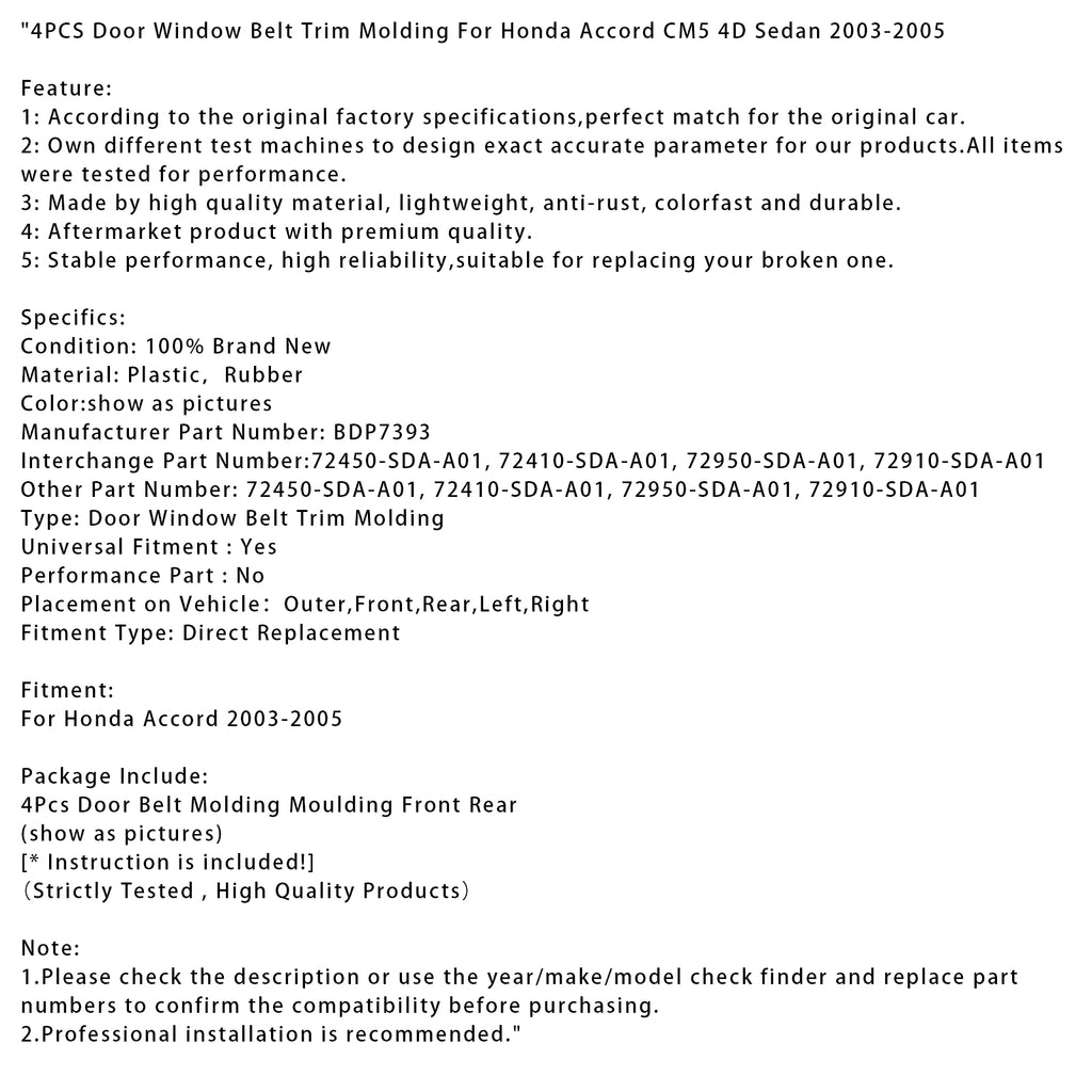 4PCS Door Window Belt Trim Molding For Honda Accord CM5 4D Sedan 2003-2005