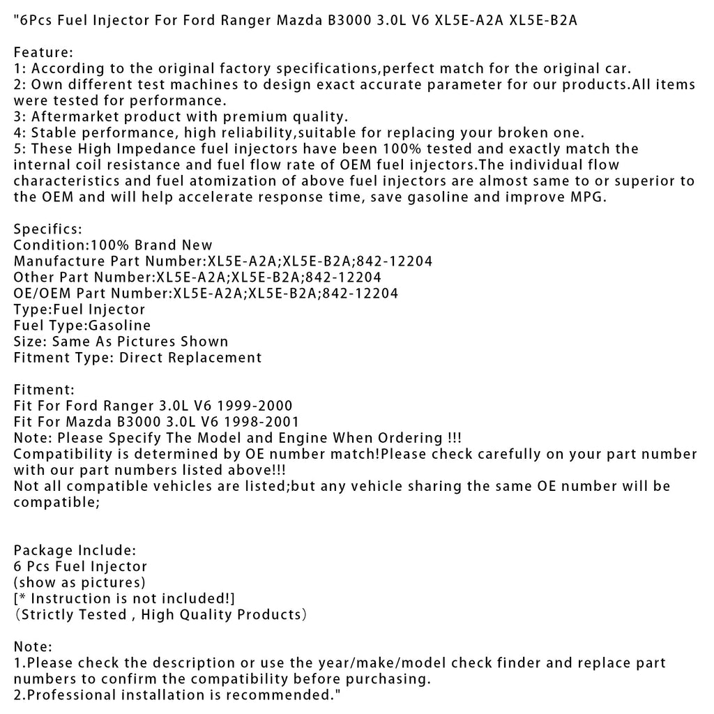 6Pcs Fuel Injector Fit For Ford Ranger Mazda B3000 3.0L V6 XL5E-A2A XL5E-B2A