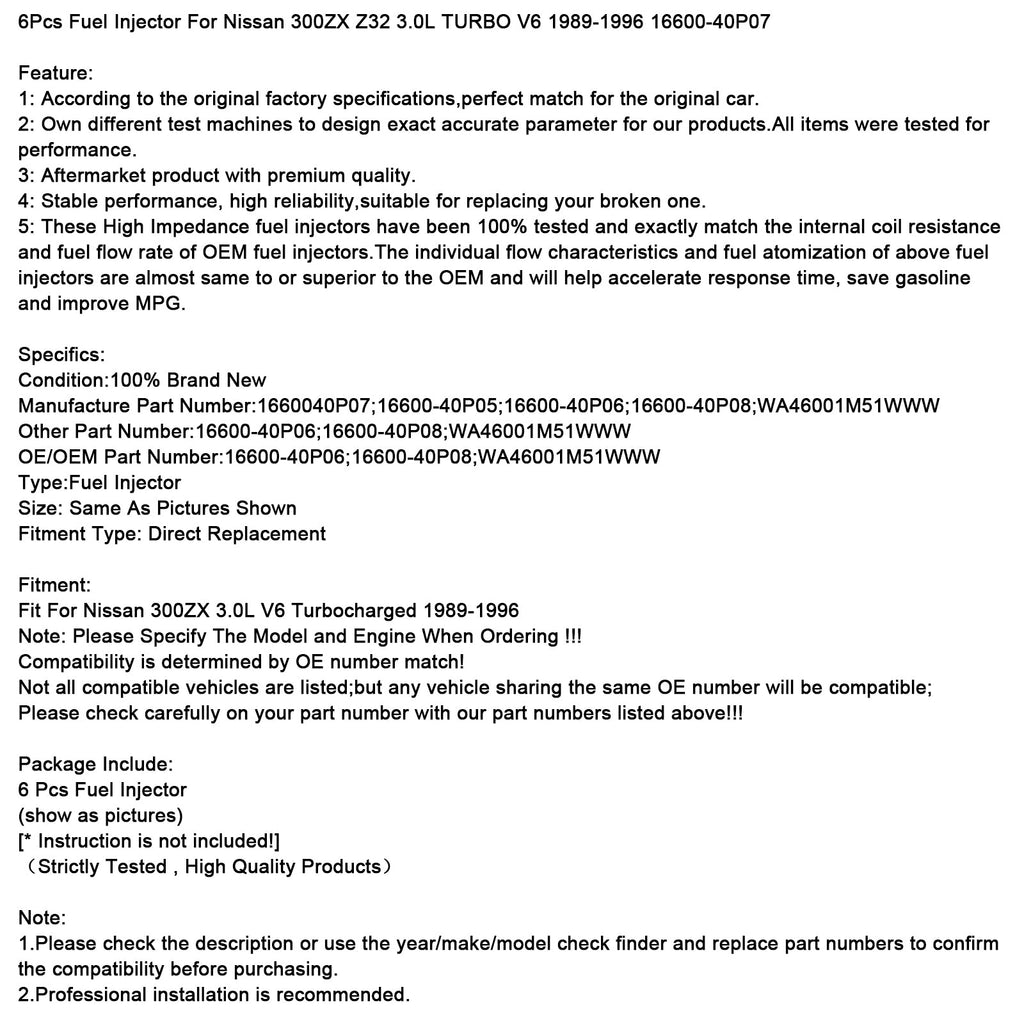 6Pcs Fuel Injector Fit For Nissan 300ZX Z32 3.0L TURBO V6 1989-1996 16600-40P07
