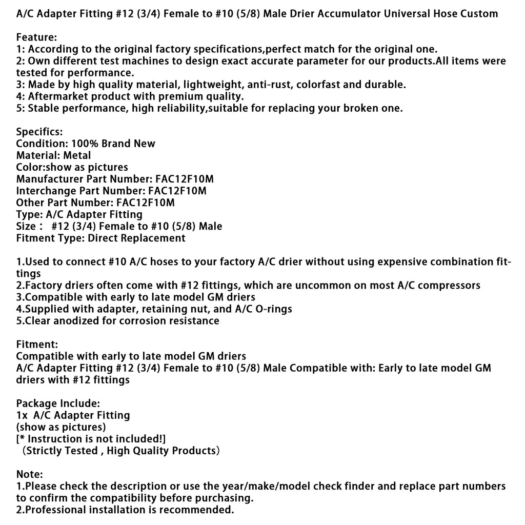 A/C Adapter Fitting #12 (3/4) Female to #10 (5/8) Male Drier Accumulator Universal Hose Custom