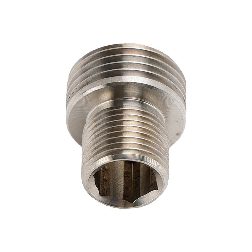 Tech Tip: Unlike the oddball 11mm Allen wrench the Ford part requires for installation, ours is 1/2" hex. Simply use a 1/2" bolt (like an intake bolt off of almost every Small Block Ford), thread a nut onto it, and turn it in with a 1/2" wrench. Easy!