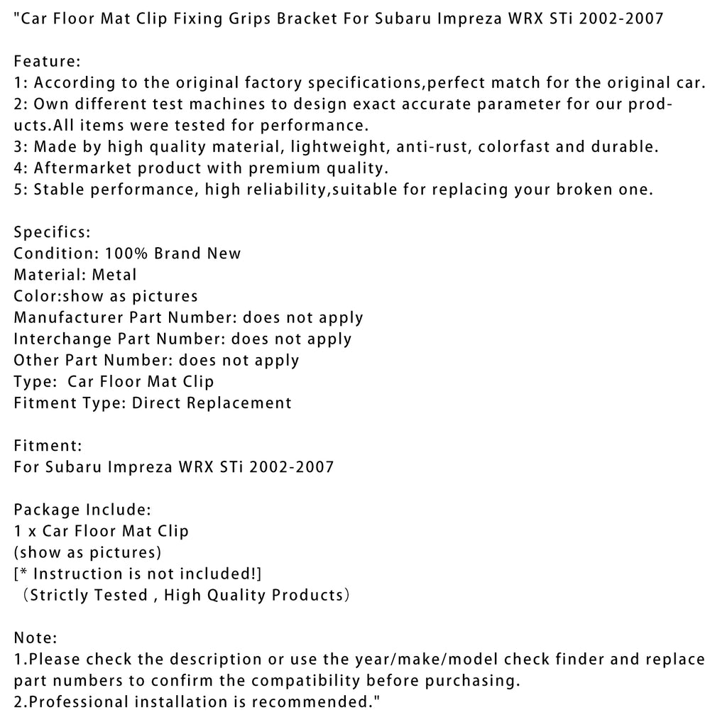 Car Floor Mat Clip Fixing Grips Bracket For Subaru Impreza WRX STi 2002-2007
