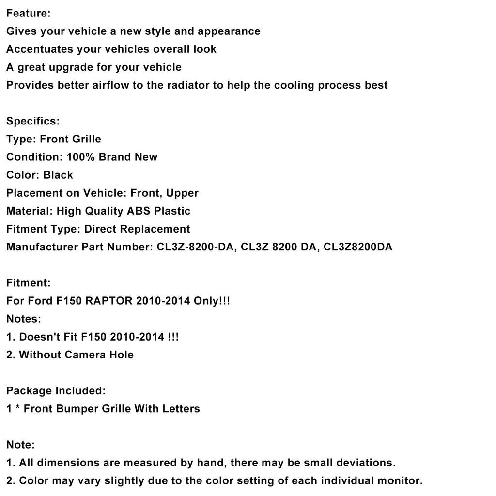 For Ford F150 RAPTOR 2010-2014 Only!!!