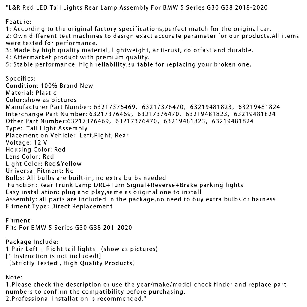 L&R Red LED Tail Lights Rear Lamp Assembly For BMW 5 Series G30 G38 2018-2020