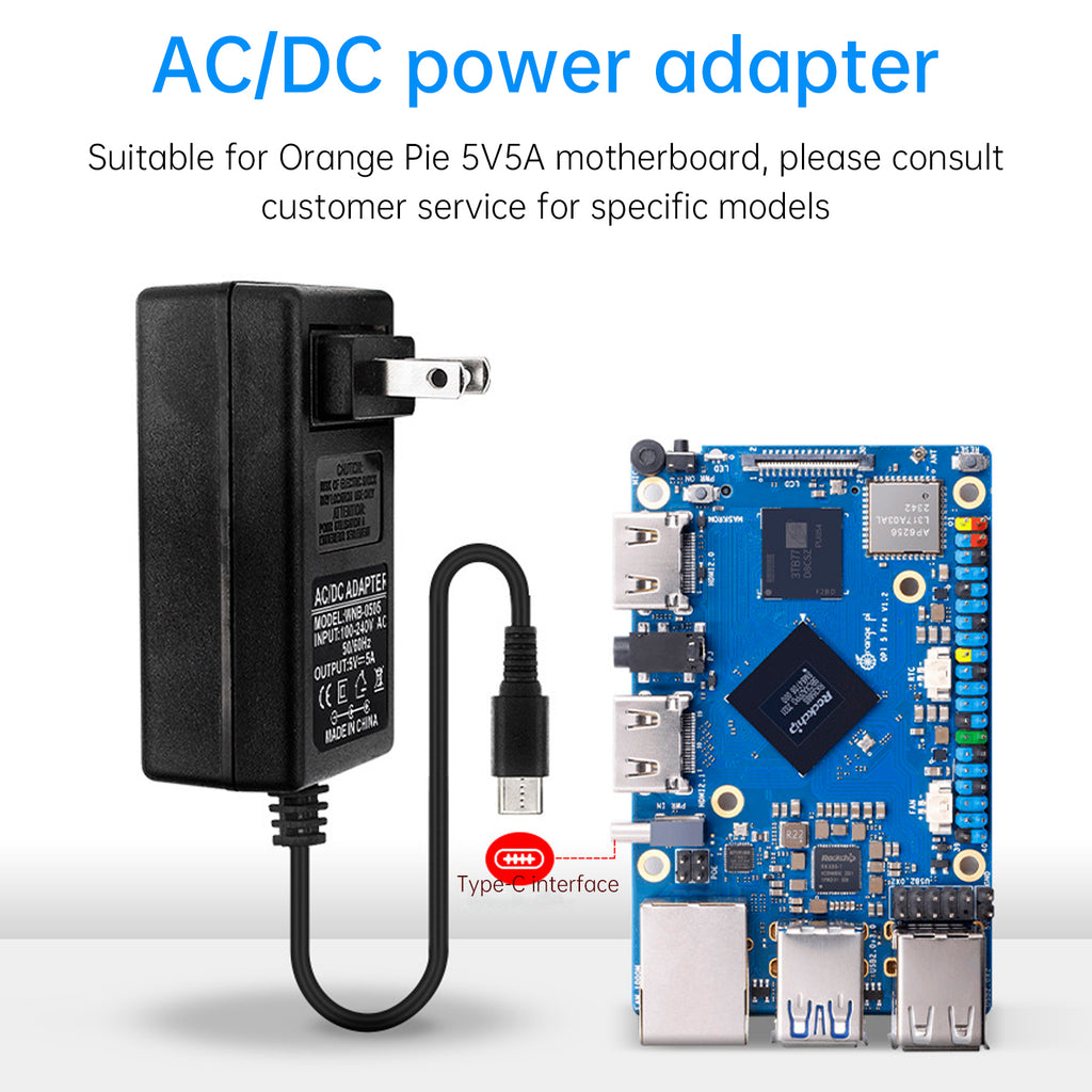 AC/DC power adapter, suitable for Orange Pi 5V 5A motherboard, please consult customer service for specific models