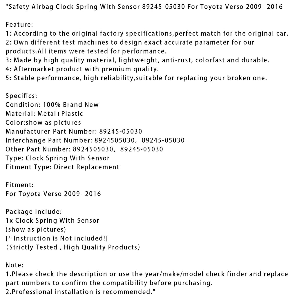 Safety Airbag Clock Spring With Sensor 89245-05030 Fit For Toyota Verso 2009- 2016