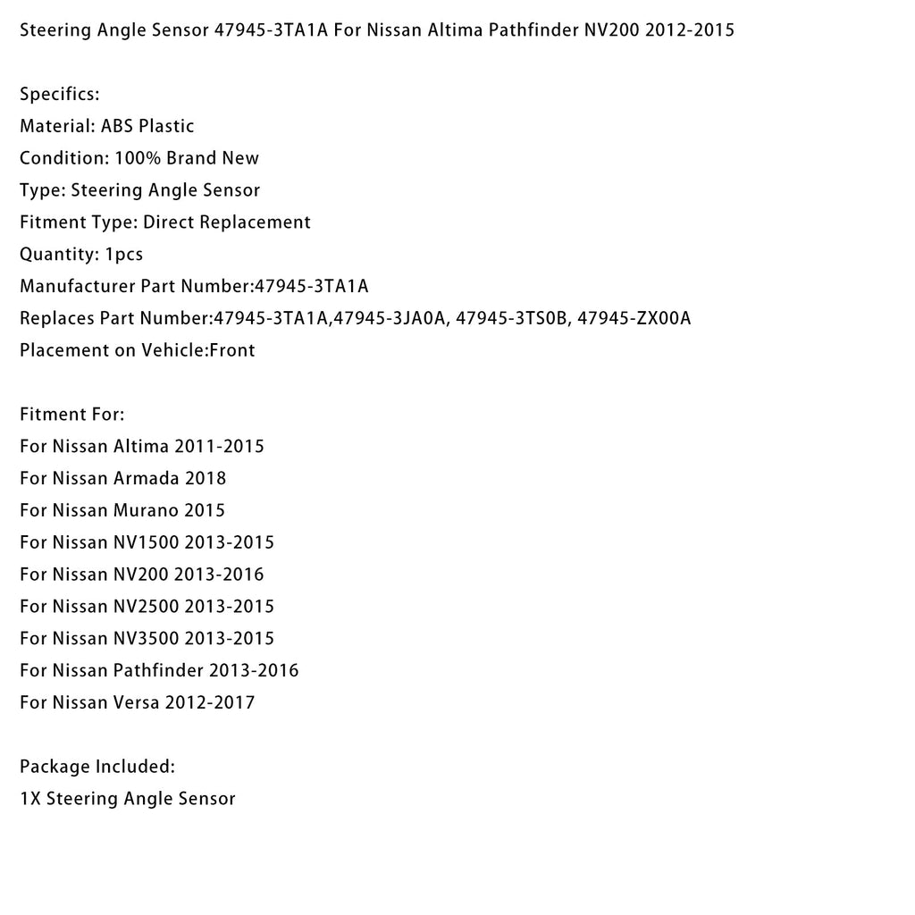 Steering Angle Sensor 47945-3TA1A For Nissan Altima Pathfinder NV200 2012-2015